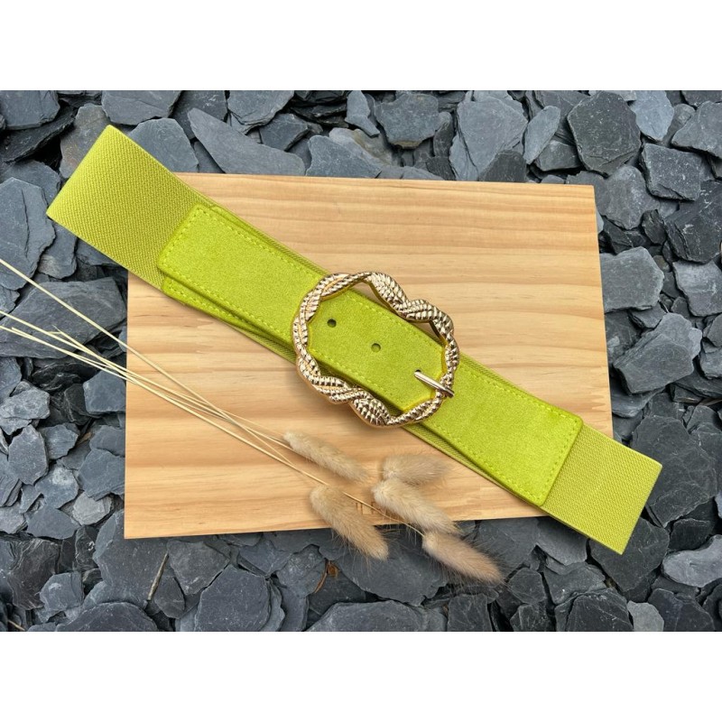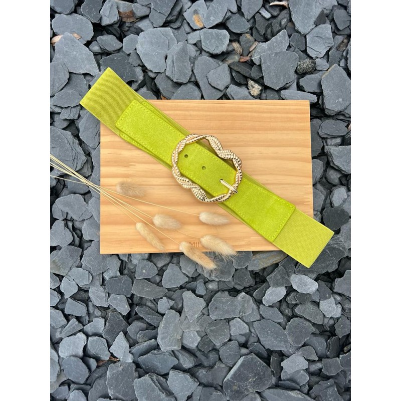 Description - Coloris vert anis - Ceinture élastique - Boucle or - Ajustable Les accessoires ne sont ni repris, ni échangés.