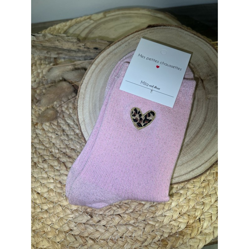 CHAUSSETTES PETITS COEURS LÉOPARD - POUDRE