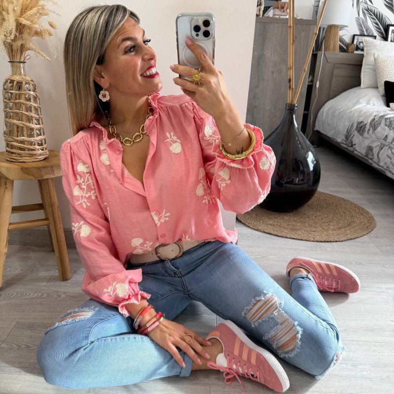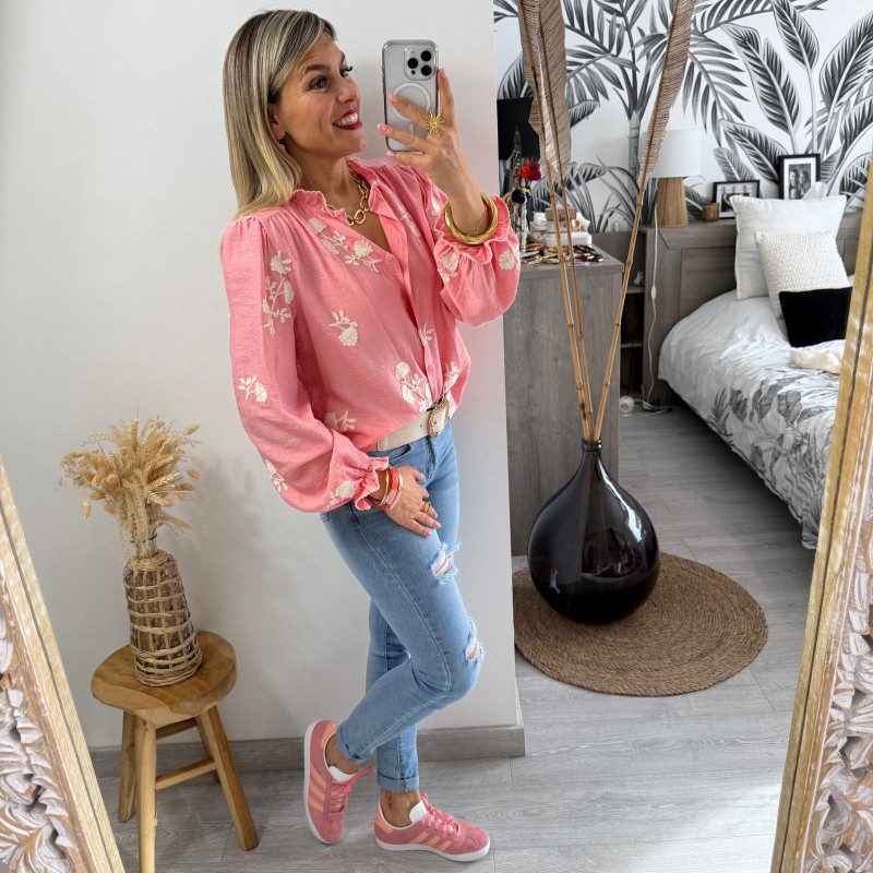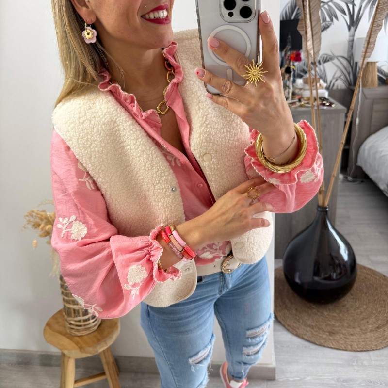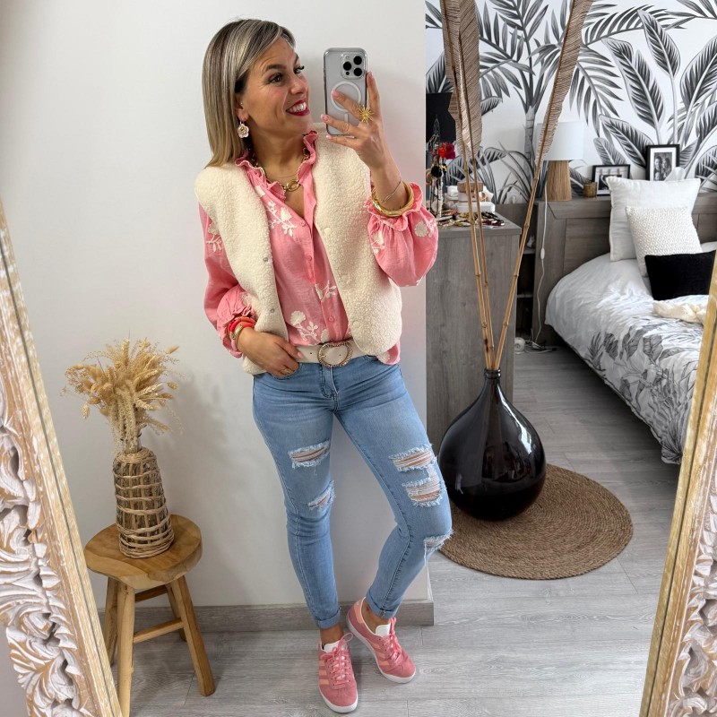 - Coloris : Rose saumon, ecru