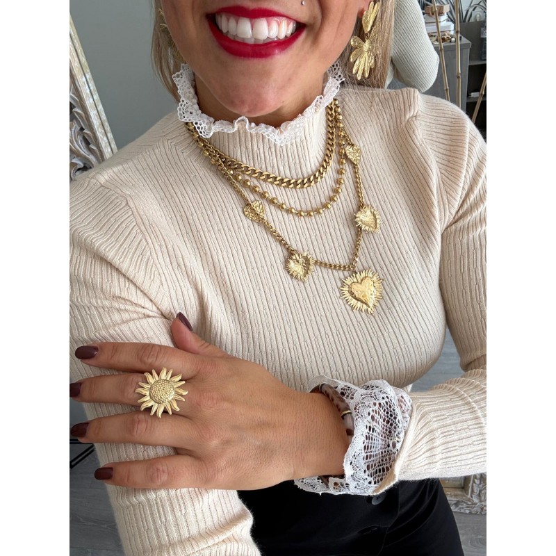 - Dentelle au col et aux manches